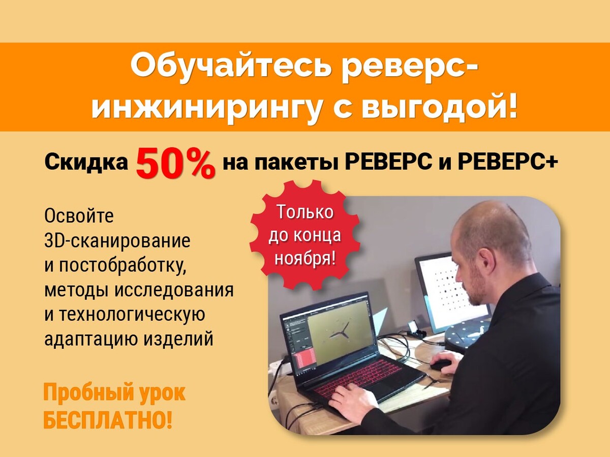 2.1 В период проведения Акции, указанной в п.1 правил, любой желающий пройти обучение на курсе «Реверс-инжиниринг в машиностроении: от 3D-сканирования до готового изделия» по пакетам РЕВЕРС и РЕВЕРС+ может записаться на обучение на сайте https://reversekurs.ru или https://complexcad.ru и получить скидку 50% от полной стоимости пакета РЕВЕРС или пакета РЕВЕРС+ . Скидка предоставляется сразу при оплате выбранного пакета.